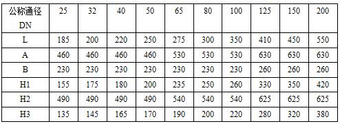 注:1、表中數(shù)據(jù)為PN16數(shù)據(jù),其余結(jié)構(gòu)外形尺寸參照ZMB、AQ/X型氣動(dòng)薄膜三通調(diào)節(jié)閥。