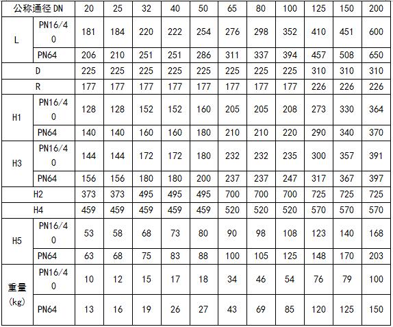 2、表中重量為配用PSL型執(zhí)行機(jī)構(gòu)數(shù)據(jù)。