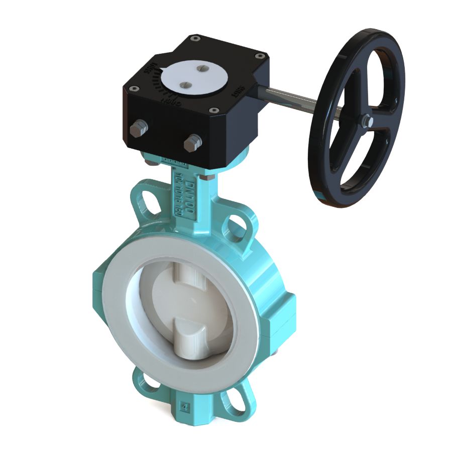 蝶閥是隨閥桿一起轉(zhuǎn)動的蝶板作啟閉件,用以實現(xiàn)閥門的開啟、關(guān)閉與調(diào)節(jié)。蝶閥在管路中除了起節(jié)斷和截流用外,近年來已經(jīng)把密封性能作為評價的主要指標(biāo),受到市場青昧,另外,媒閥還有體積小重量輕、結(jié)構(gòu)簡單等優(yōu)點,與同參數(shù)間閥比較,平均減累重量達(dá)30~50%,媒板旋轉(zhuǎn)90"即可實現(xiàn)啟、閉過程,又由于轉(zhuǎn)軸兩側(cè)媒板受介質(zhì)作用力近似相等等,轉(zhuǎn)矩相反,因此啟閉力矩較小。1其基本類型有兩種,法蘭式和對夾式(中線)全村里型對夾式閥,采用對分兩片式閥體組合,闊座與閥體內(nèi)村一體化,閥門工作時,只有全塑閥座與村塑蝶板與介質(zhì)接觸,產(chǎn)品可承受“除熔融減金和元素第”外的任何介質(zhì)腐蝕,其中閥閥桿與媒板(鍛)為一體,表面均勻包裹一層FEP。閥體通道內(nèi)表面光滑,流體阻力小,CV值高,流通能力強,扭矩適中,采用四級密封結(jié)構(gòu)并在密封面外配以耐溫抗老化的SI橡膠的彈性村墊閥座,完全達(dá)到介質(zhì)的季泄漏